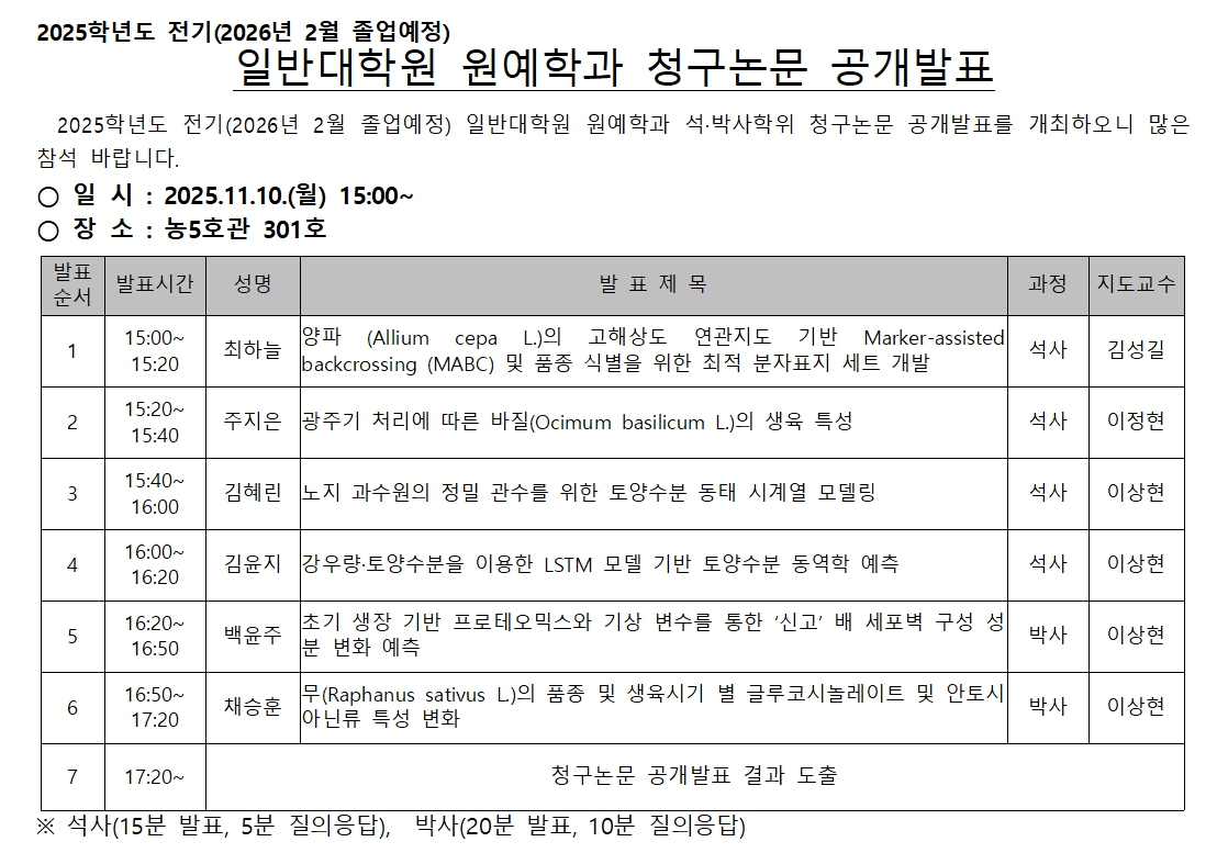 [대학원] 2025학년도 전기(2026년 2월 졸업예정)청구논문 공개발표(11.10 월 15:00~)