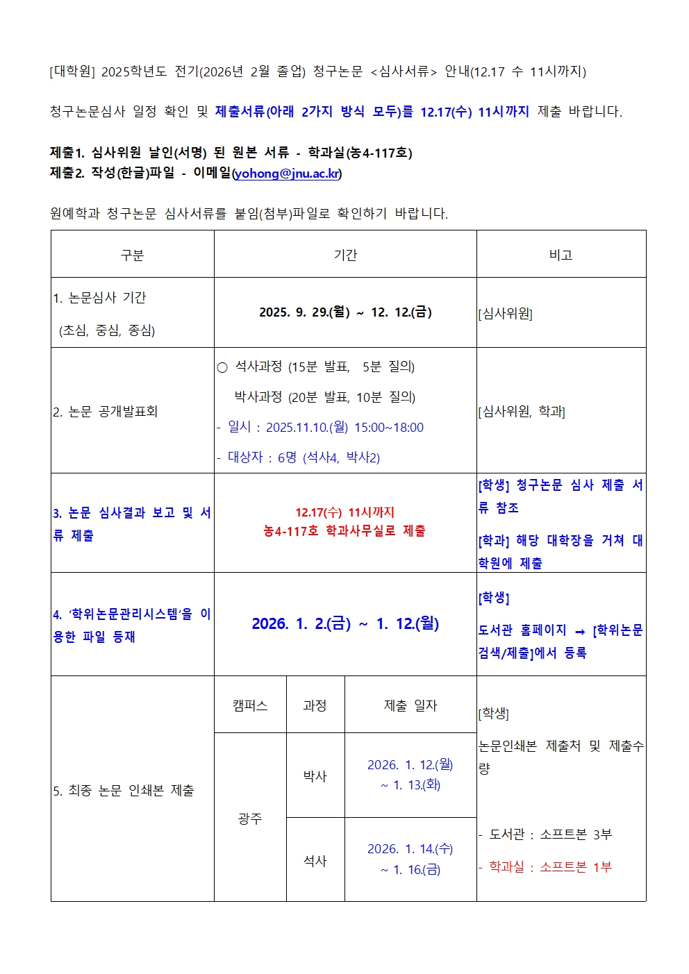 [대학원] 2025학년도 전기(2026년 2월 졸업) 청구논문 <심사서류> 안내(12.17 수 11시까지)