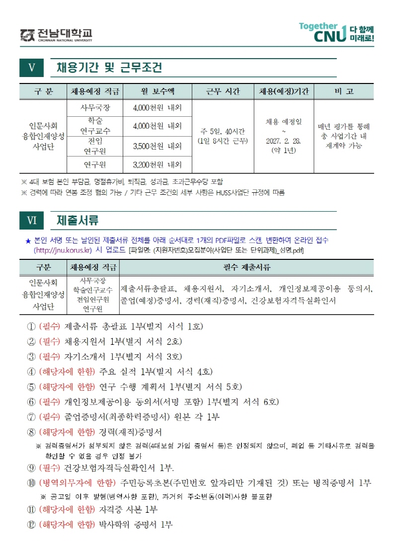 ★ 2026년도 제1회 전남대학교 인문사회 융합인재양성사업단 직원 채용 공고(안).pdf
